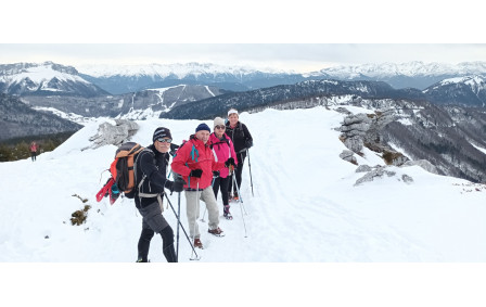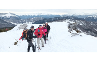 Sortie raquettes le 16 janvier 2026, destination des Crêtes du Margériaz pour un petit groupe du Cvt. Le soleil les a accompagné jusqu'à 13h30, puis sur les Crêtes, c'est un vent froid, très froid qui les attendait. Le pique-nique s'est fait à l'abri...