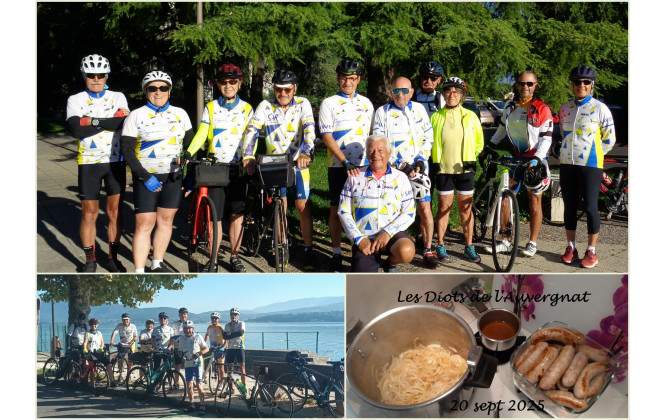 Après un petit tour de vélo, le matin, histoire de bien commencer la journée, une vingtaine de convives s'est retrouvé autour d'un repas, préparé par Yves.🌭🧀🍰🥂...